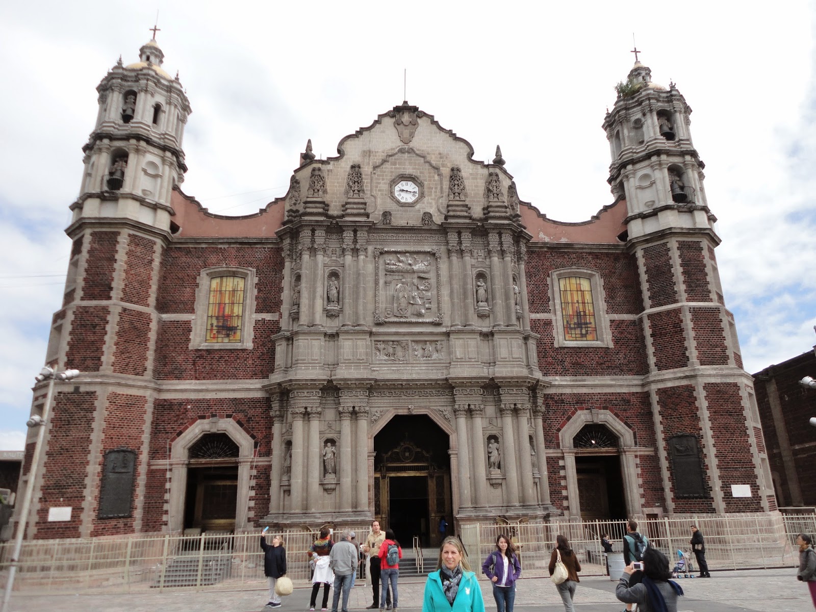 Depois, seguimos para as Basílicas de Guadalupe, construídas no mesmo espaço. A primeira e mais antiga, foi construída em 1709 na época em que o México era colônia da Espanha, mas com o afundamento do terreno em que foi construída (havia um lago que foi aterrado), houve risco de que a mesma ruísse e incluso fizeram muitas reparações.